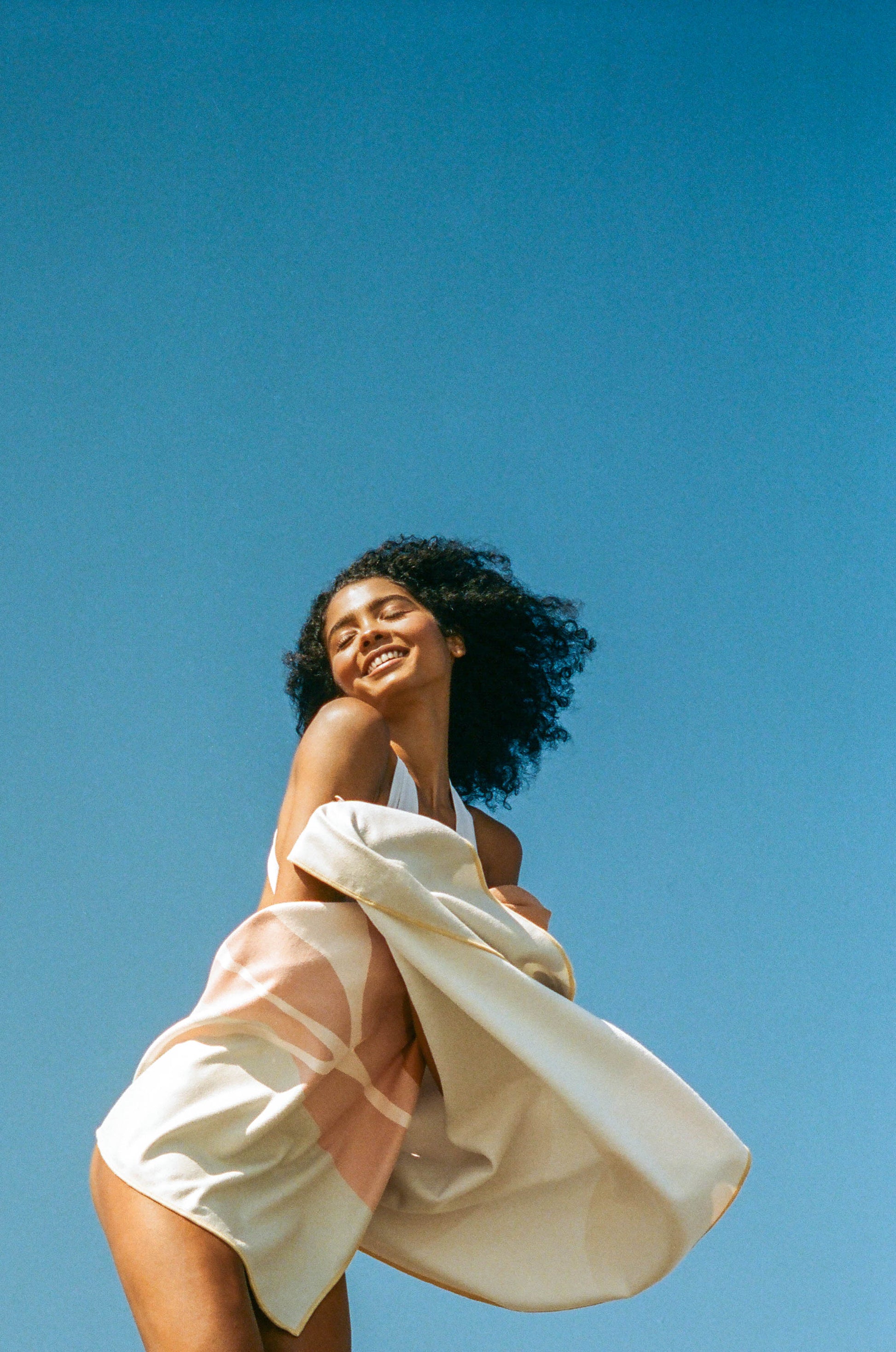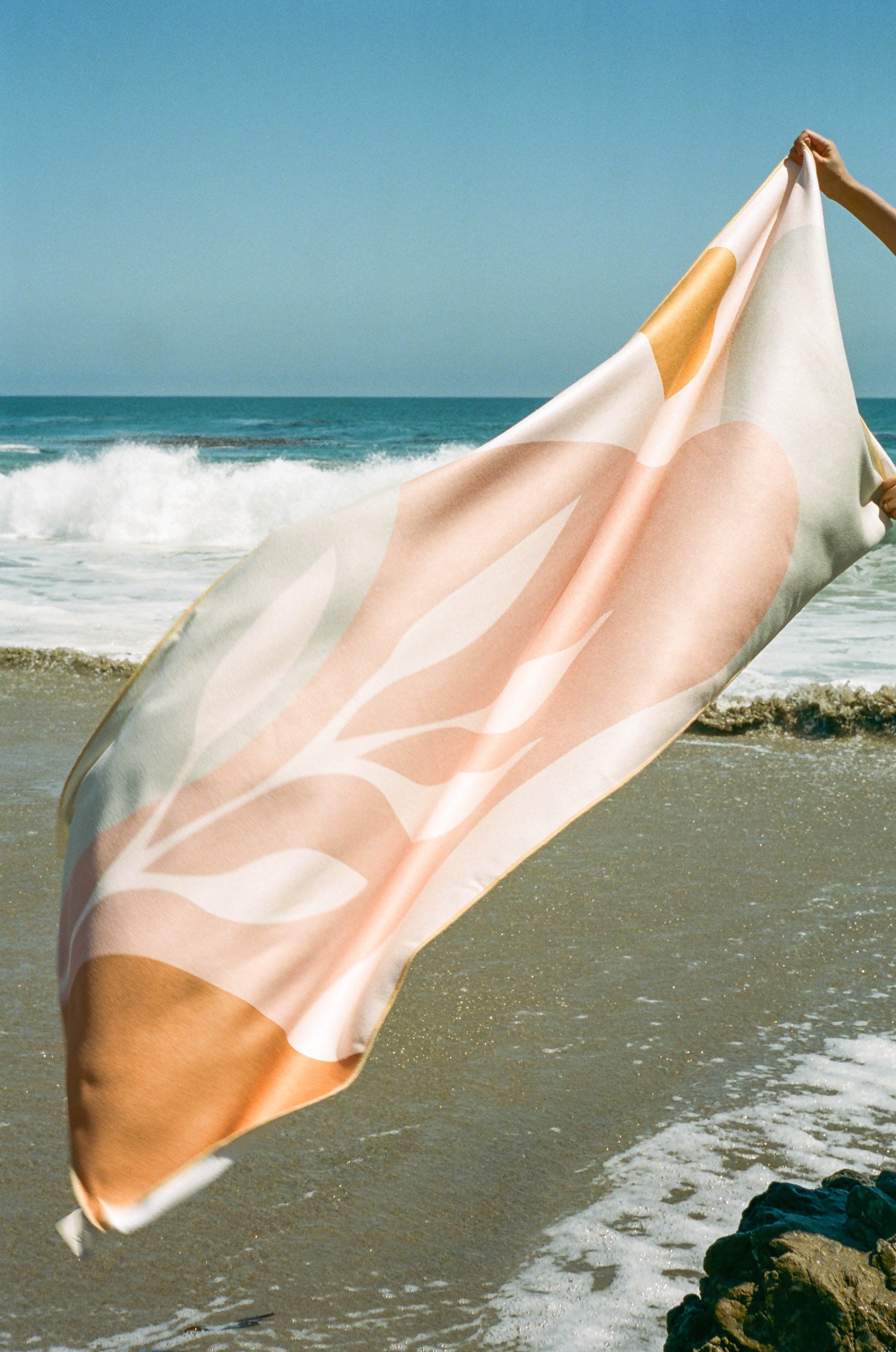 Made with Certified Post-Consumer Recycled Plastic, this Sustainable Multi-purpose towel is perfect for beach, Yoga, Surf, Travel and beyond