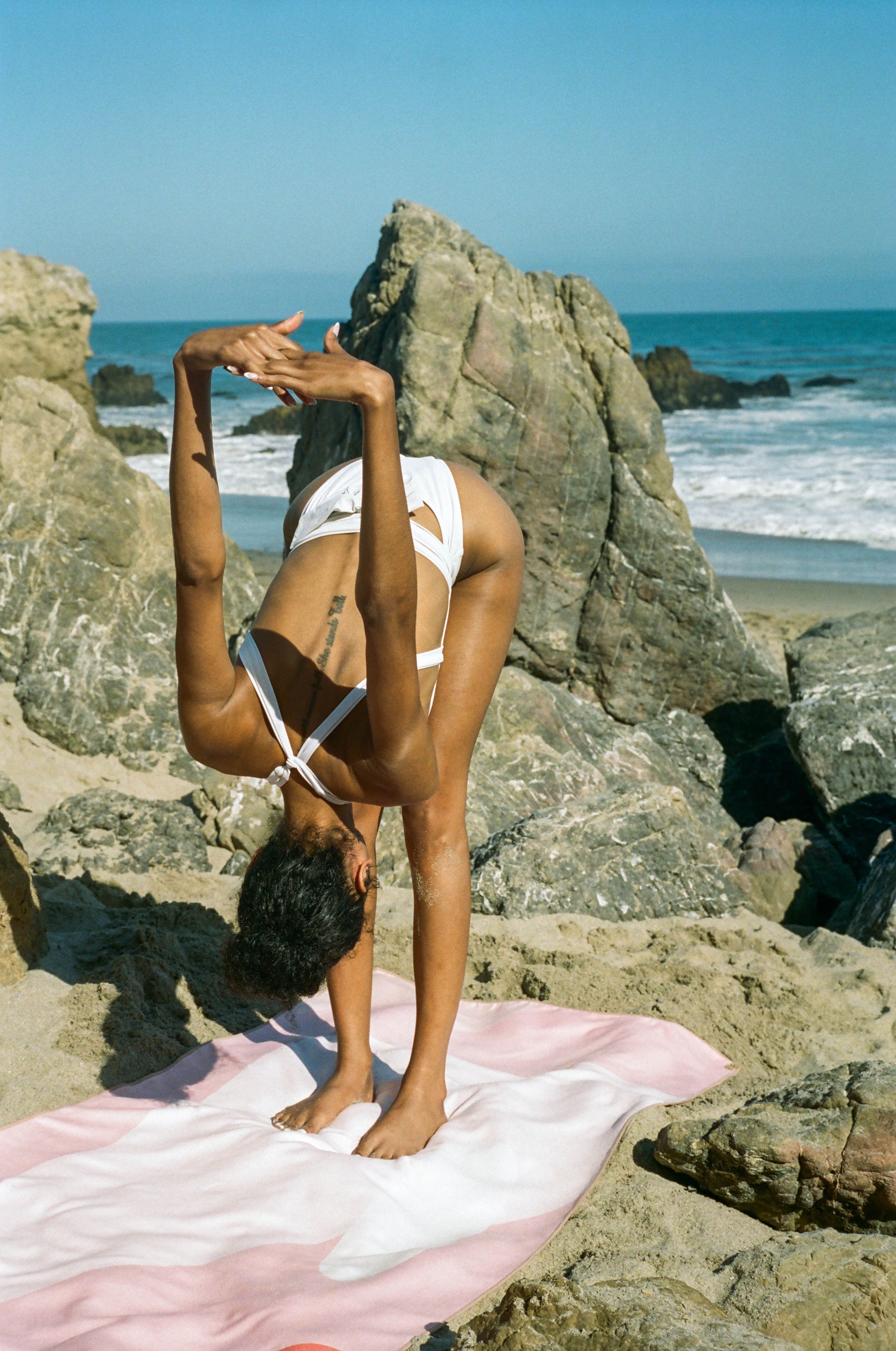 Sand slips off with a gentle shake. Don't worry about bringing sand back home