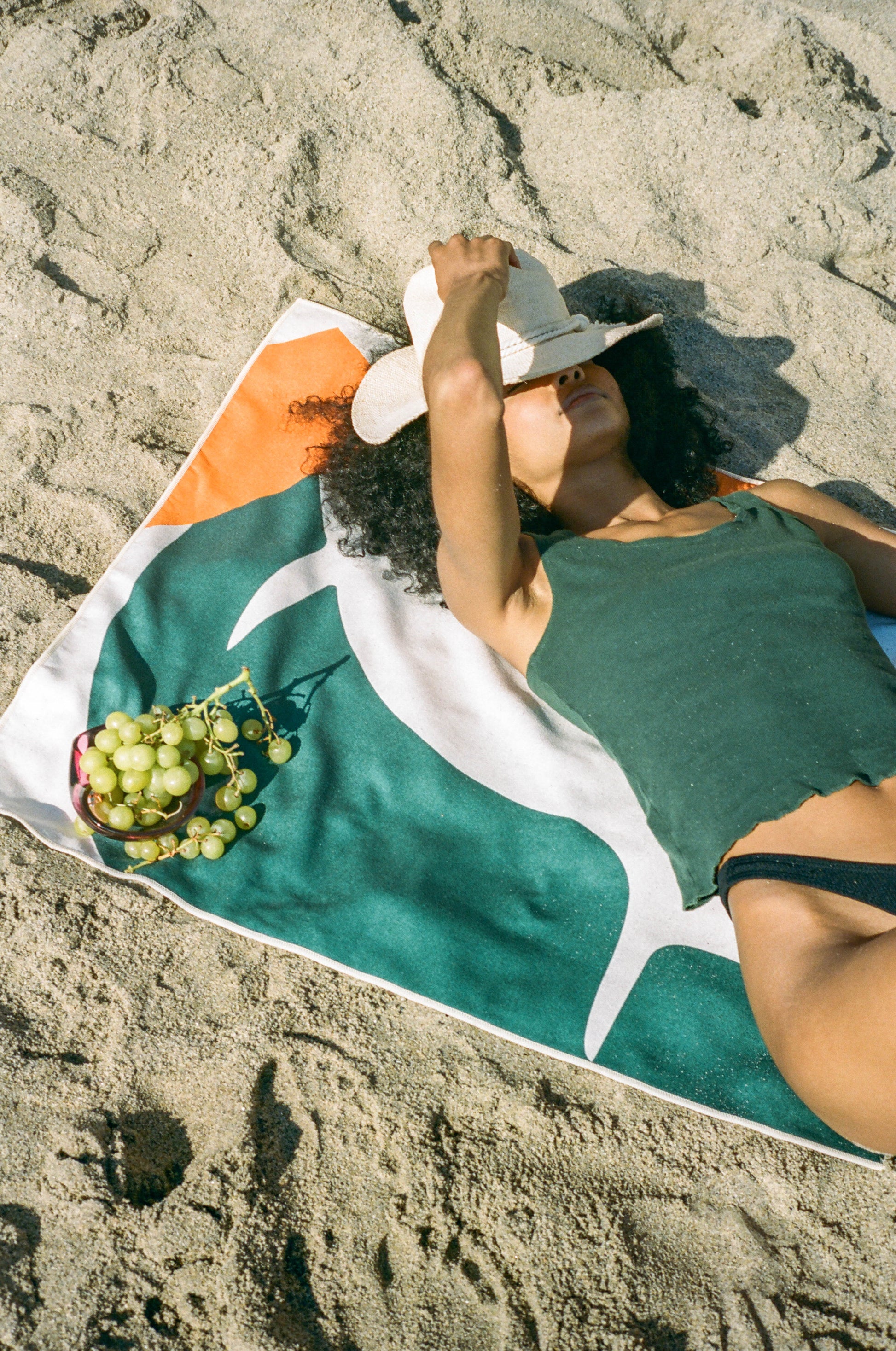Sand slips off with a gentle shake. Don't worry about bringing sand back home